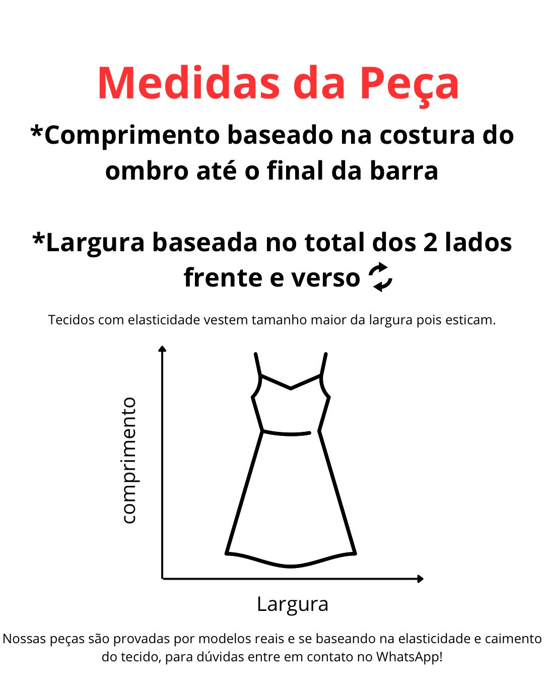 Tamanho Único (46/54) – vestido clientes entre essa numeração devido à elasticidade e modelo da peça.